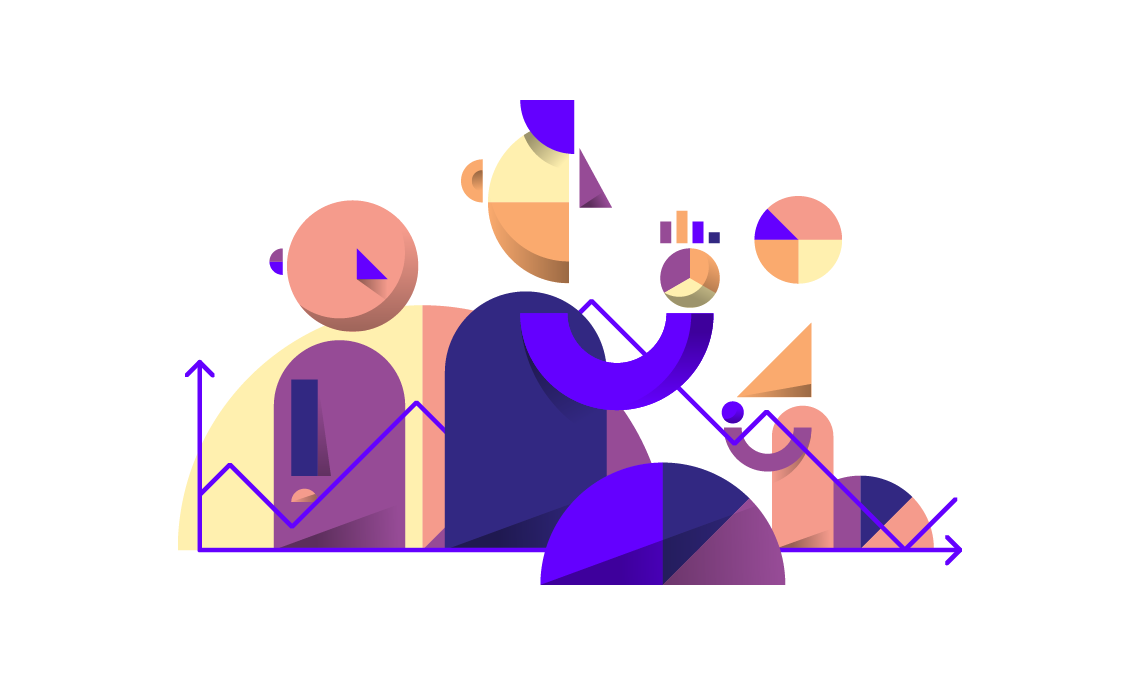 - Illustrationer och grafiska element uppbyggda av diagram och datavisualisering.