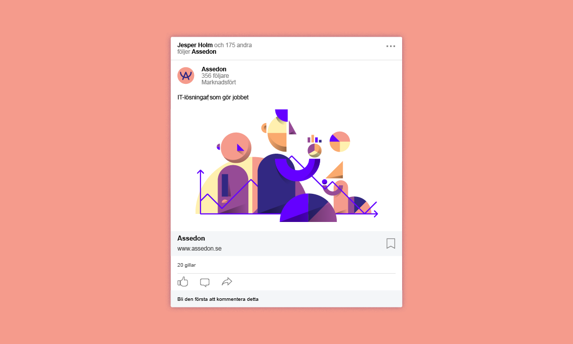 Färgskalan och typografin placerar Assedon i gränslandet mellan en modern techaktör och ett företag med människofokus. Identiteten är flexibel och kan anpassas