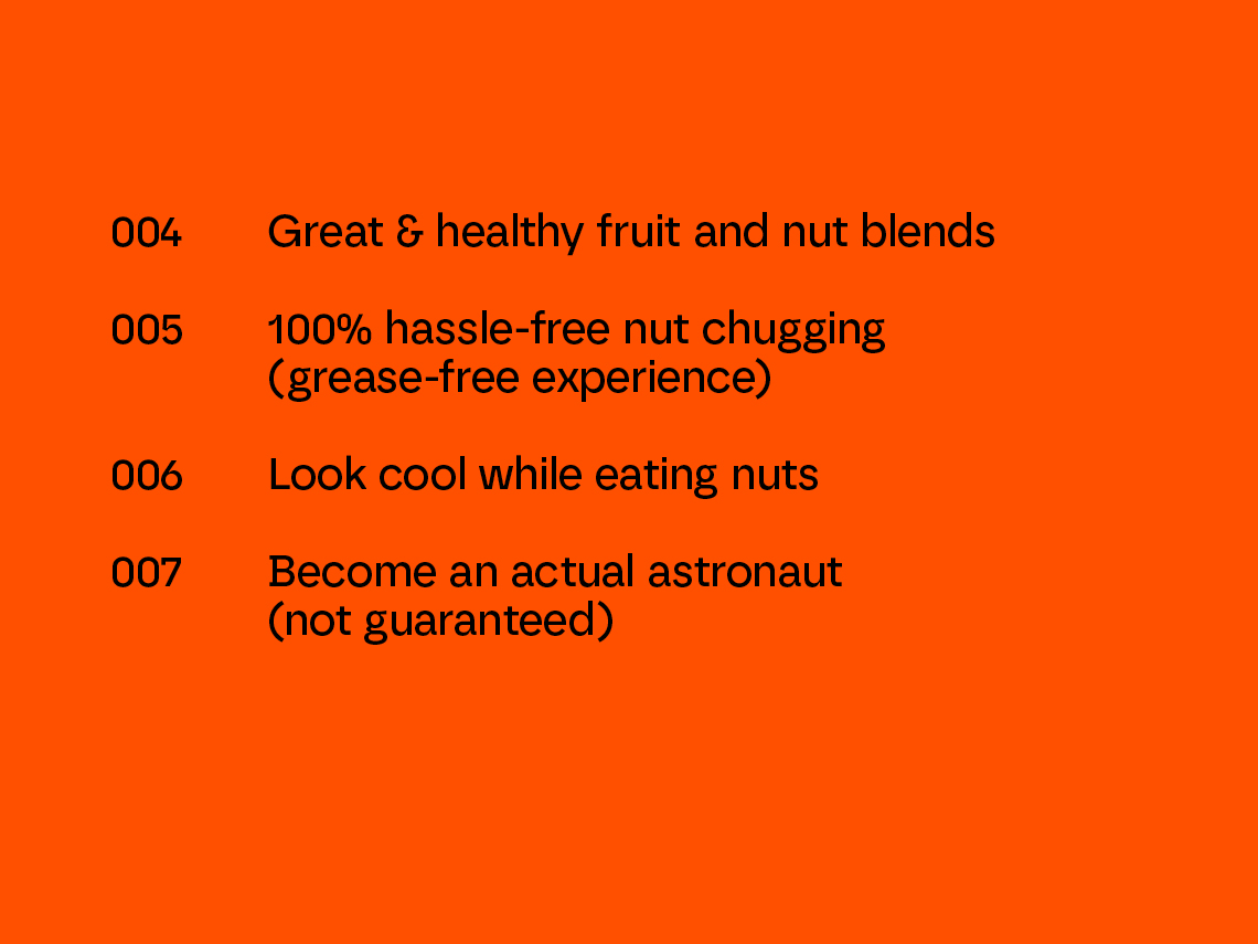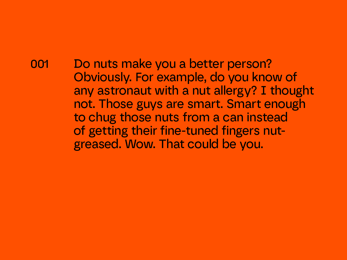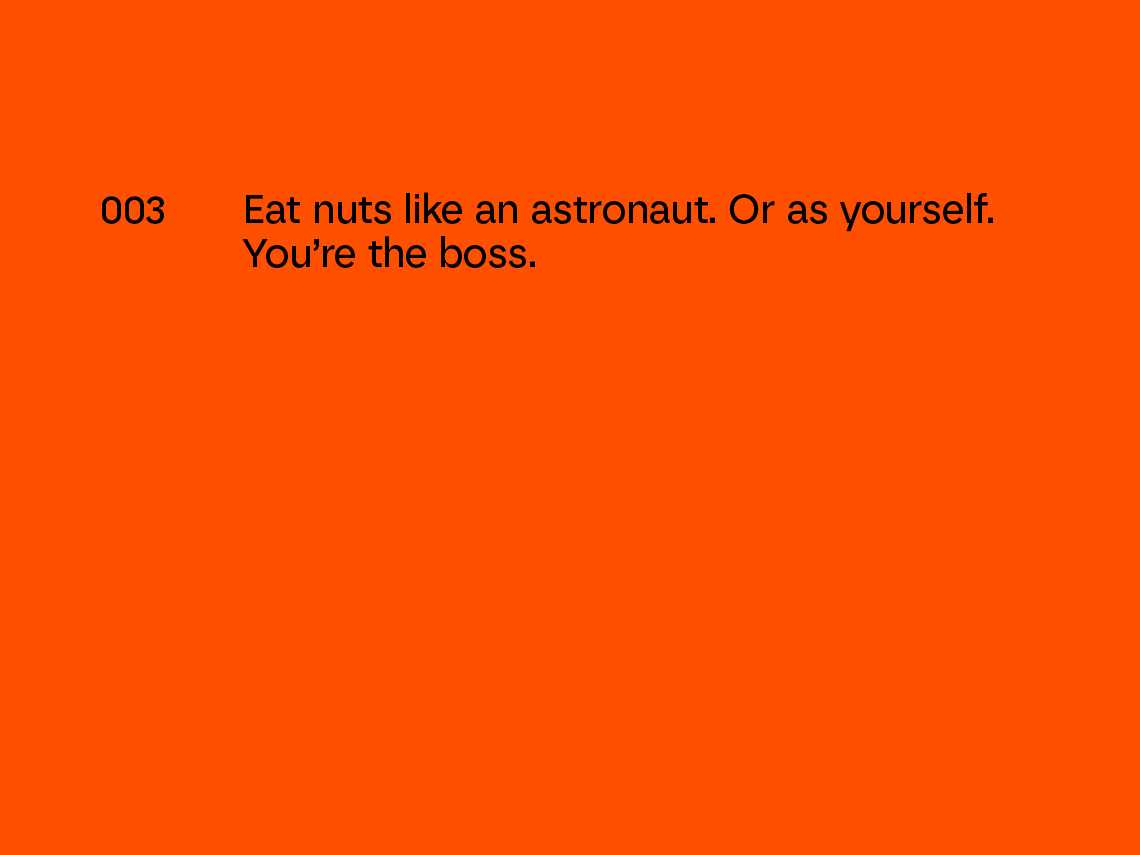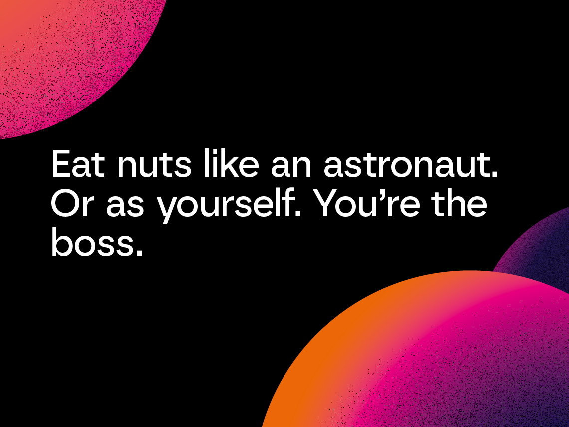 Astronuts identitet bygger på idén om aspiration och att sikta högt – ”Eat nuts like an Astronaut. Or as yourself. You’re the boss.”