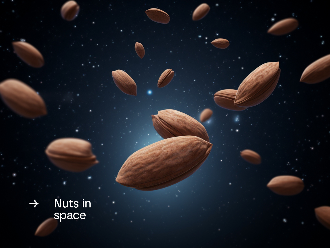 Logotypen symboliserar en astronauthjälm med en cashewnöt som visir, och den grafiska designen knyter an till rymdens mystik genom nötliknande former som bildar planeter och abstrakta bakgrundsmönster.