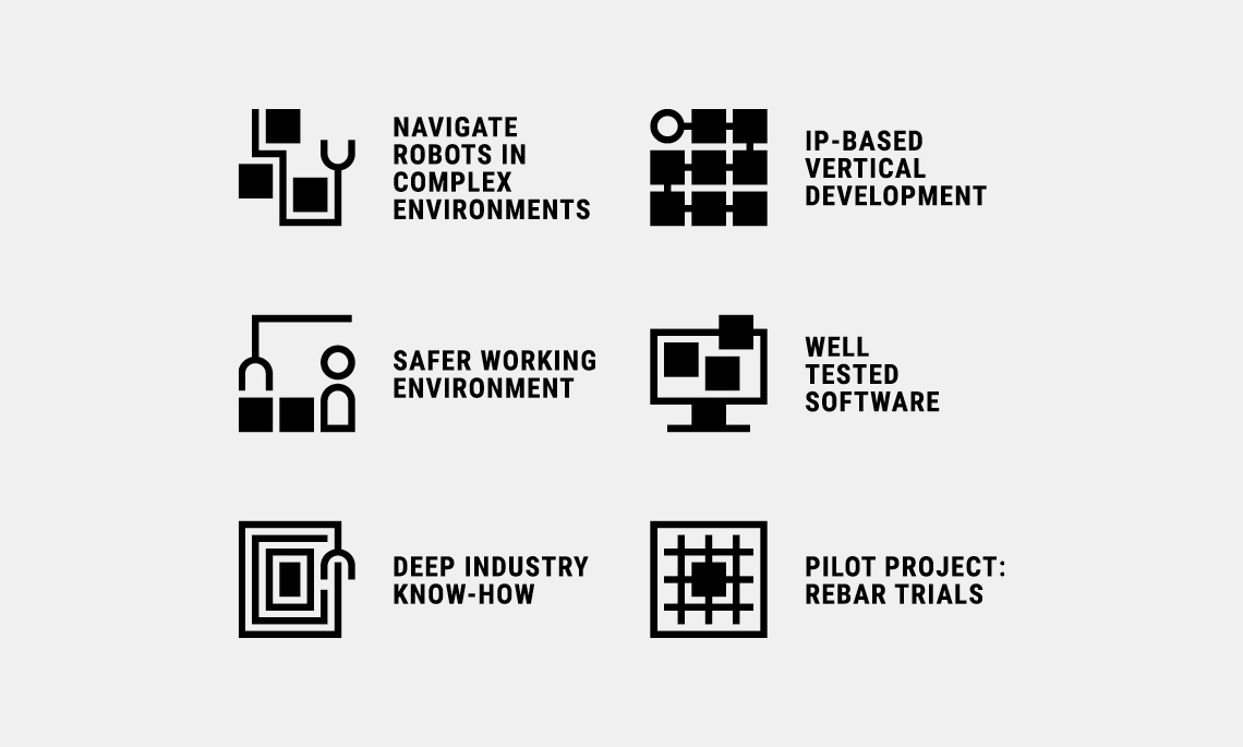 - 3D-grafik och symboler kopplade till rörelseplanering och industriella miljöer.