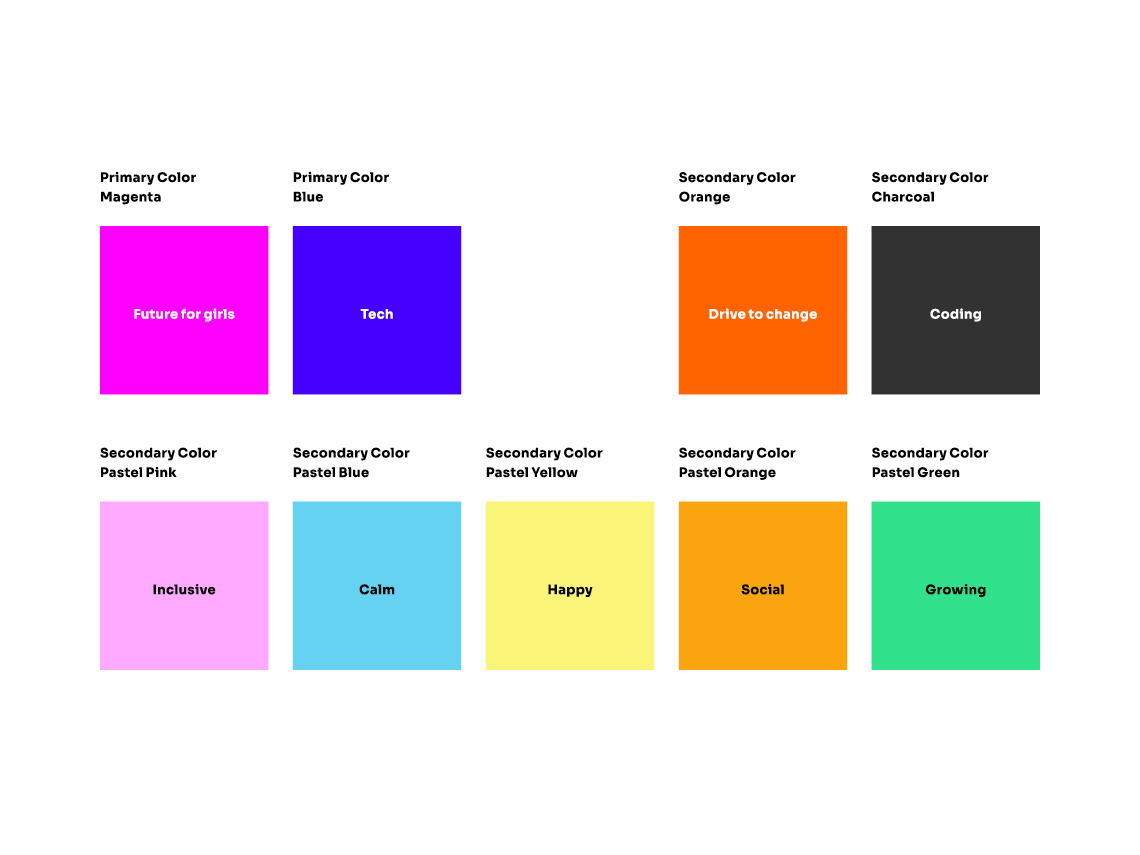 Färgspråket bygger på en mix av techvärldens tydlighet och barnvärldens kreativitet, vilket skapar en engagerande visuell identitet.