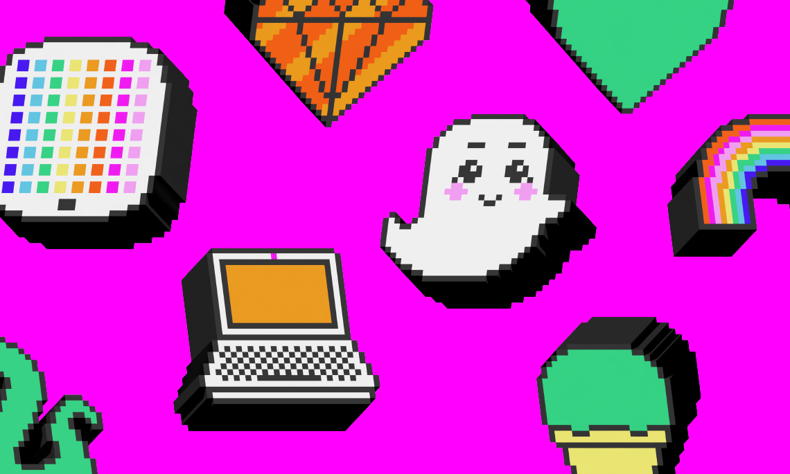 - Pixelerade 3D-ikoner som förstärker den lekfulla, taktila känslan.