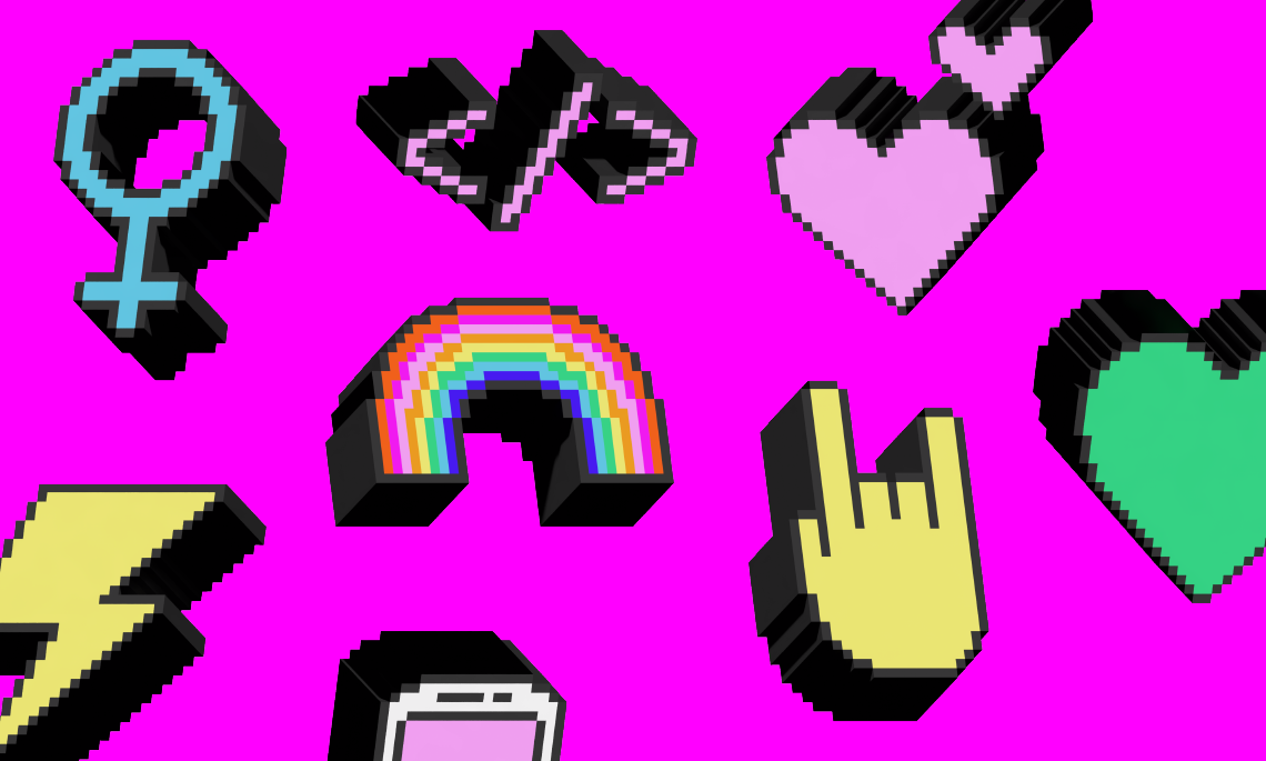 Utforska logotypen, den grafiska profilen och de pixelerade 3D-ikonerna i praktiken.