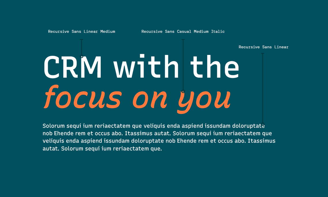 Färgerna är valda för att ligga i gränslandet mellan det tekniska och det varma, och signalerar både bransch och position. Typsnittet är framtaget för att kunna spegla seriositet, personlighet och hantverk, beroende på vilken vikt man väljer.