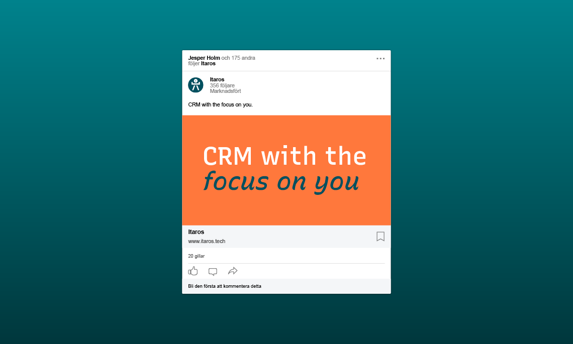 Itaros är ett IT-konsultbolag med CRM-fokus. Det som gör bolaget unikt är den direkta kontakten mellan kund och programmerare, vilket skapar en nära känsla i projekten och ger de anställda ett högt engagemang.