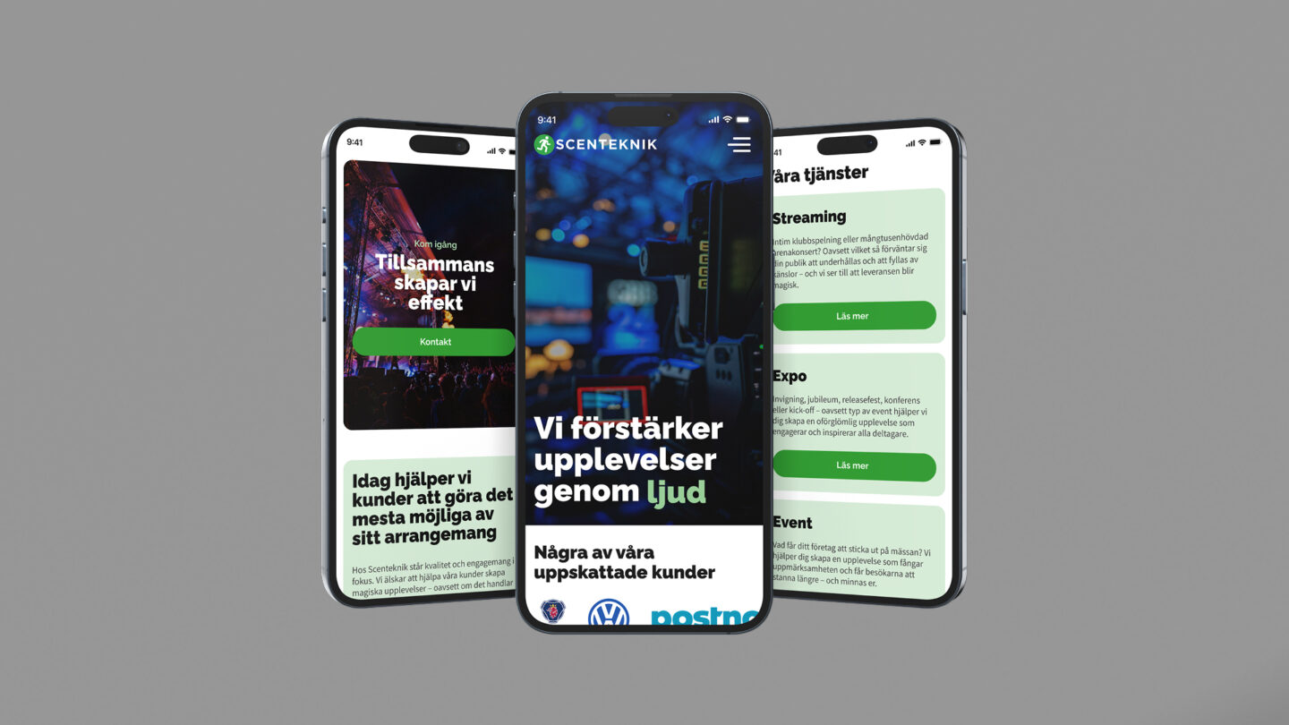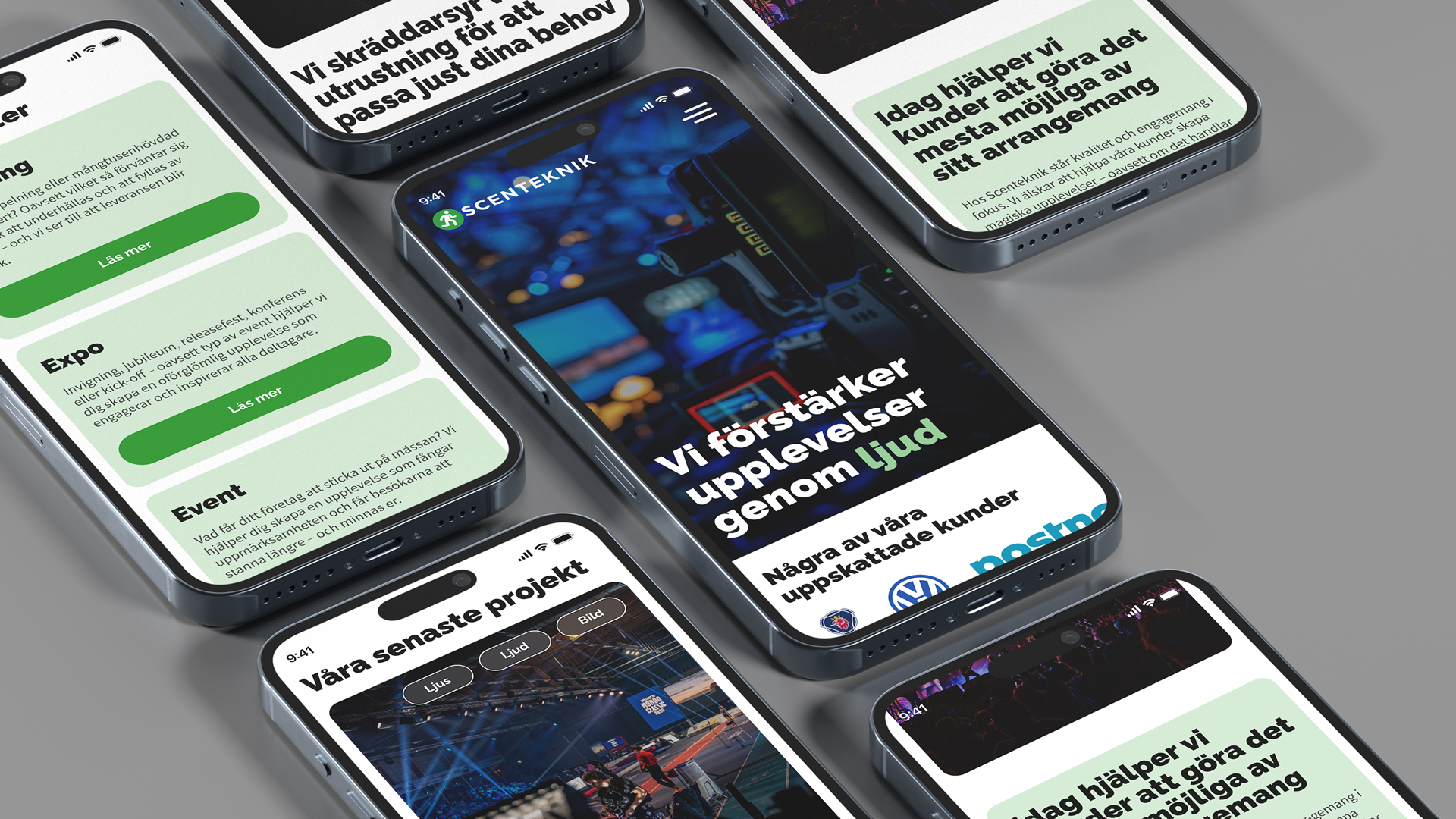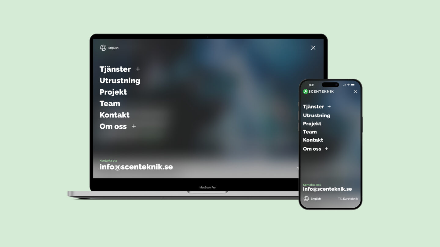 Webbplatsen bygger på en modulär struktur som enkelt kan anpassas efter nya behov. Teknik och design samspelar i övergångar, mikrointeraktioner och en tydlig mobilupplevelse. Den nya webbplatsen speglar Scentekniks erbjudande och position – på scen och online.