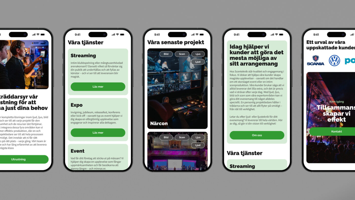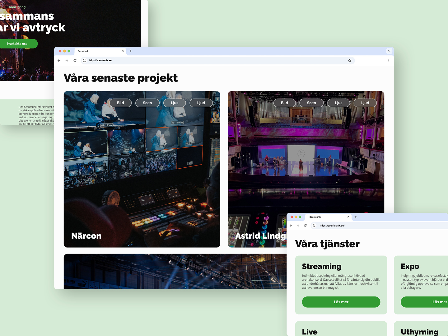 Texterna på webbplatsen har arbetats fram för att spegla det Scenteknik faktiskt gör – inte bara vad man erbjuder. Vi lyfter kundens upplevelse, det personliga bemötandet och det som ofta får kunderna att återkomma. Tonen är tydlig, prestigelös och engagerad.
